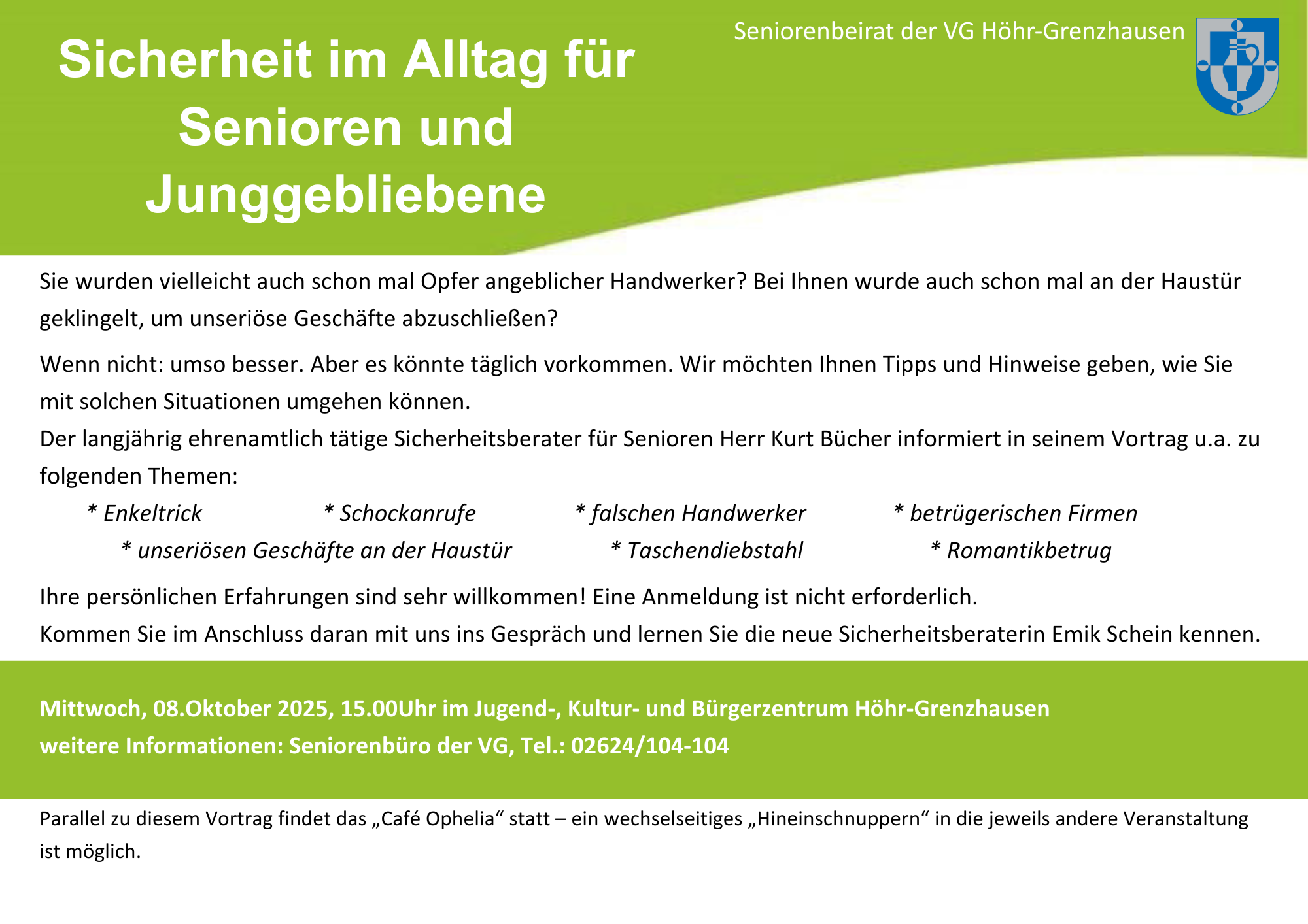 weitere Informationen: Seniorenbüro der VG, Tel.: 02624/104-104